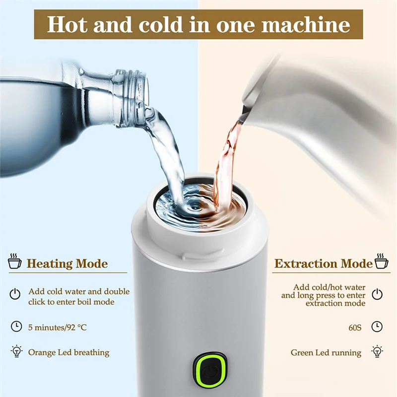 [Large Capacity]This travel coffee machine is equipped with a 2500mAh battery and a modern Type-C charging port, which supports car and USB charging to meet your daily multiple use needs.